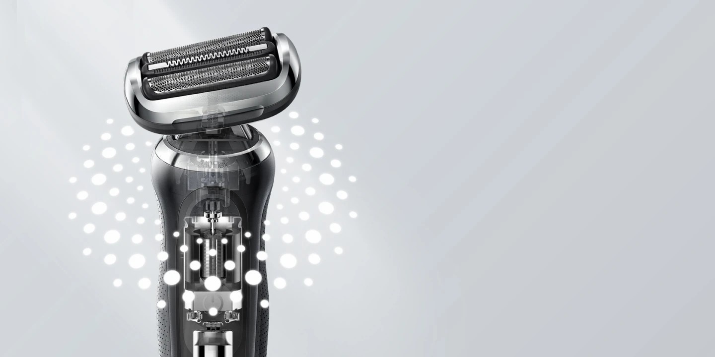 Đầu linh hoạt 360 ° thích ứng để mang lại khả năng tiếp xúc tối đa giúp cạo mượt mà hơn, ngay cả ở những khu vực khó.